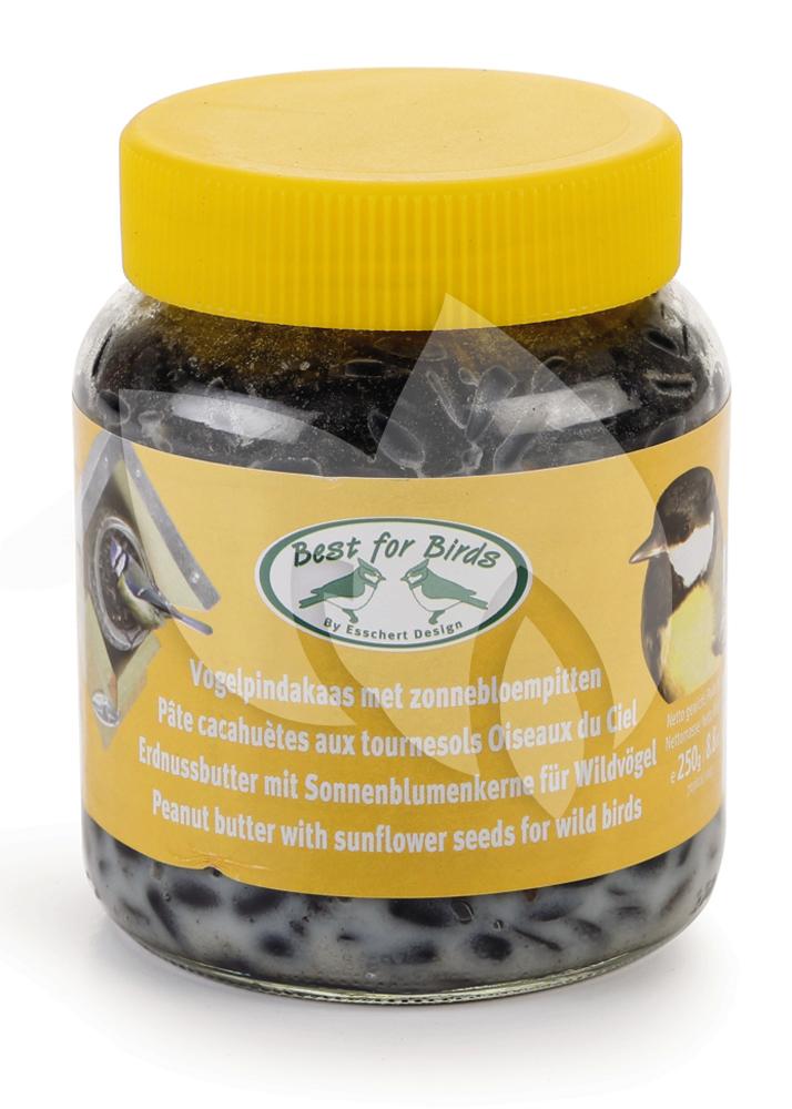 Verwen uw tuinvogels met deze speciaal voor vogels samengestelde vogelpindakaas. De pindakaas is vrij van zouten waardoor het veilig te gebruiken is voor vogels. De pindakaas is goed gevuld met zonnebloempitten en is zeer voedzaam voor uw tuinvogels.