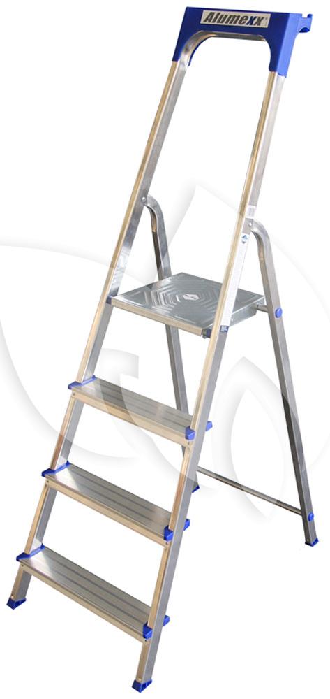 Het gereedschapsbakje op de steunbeugel en het lichtgewicht van deze huishoudtrap maakt dat deze trap een onmisbaar hulpmiddel is bij klusjes in en om het huis. Ter voorkoming van wegglijden en beschadigingen zijn er kunststof doppen op de poten aangebracht. Voor uw veiligheid is er een antislip profiel op de treden en het plateau aangebracht.