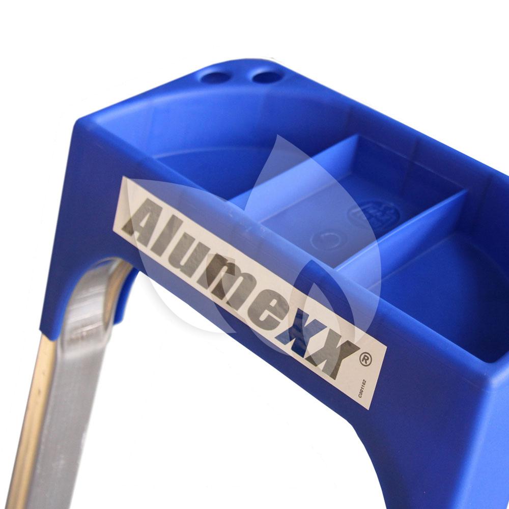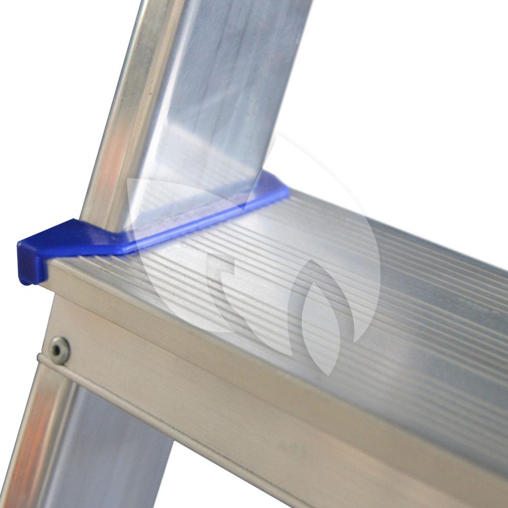 Ook deze tussenmaat van deze serie huishoudtrappen is gemaakt van aluminium waardoor het een lichte, maar sterkte trap is en hiermee geschikt voor veelvuldig gebruik. Een handig gereedschapsbakje maakt dat wegrollend materiaal tot een verleden behoren. De huishoudtrap is uitgerust met kunststof doppen aan de poten waardoor de kans op wegglijden geminimaliseerd wordt en tevens de vloer beschermd tegen krassen. De treden zijn voor uw veiligheid voorzien van een antislip profiel.