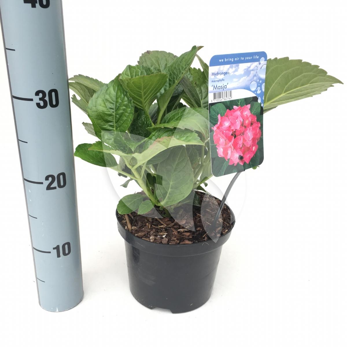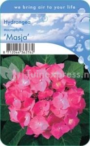 Hortensia Masja is een oude variëteit, al in 1976 kreeg zij de onderscheiding ‘beste nieuwe plant’. De plant blijft compact met een hoogte van maximaal 120cm. De perfect ronde bloembollen zijn warm roze van kleur, welke in zuurdere grond meer blauw zullen kleuren. Boerenhortensia Masja is een prachtige verschijning in groepsverband.