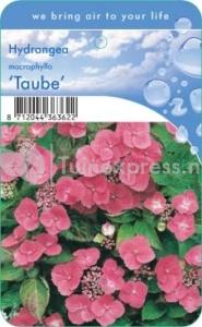 Taube is een mooie schermbloeier die zowel roze als blauwkleurige bloemen kan aannemen. Zowel de grote randbloemen als de binnenste fertiele bloemen in het hart van het scherm hebben eenzelfde blauwe of paarse kleur. Welke kleur u ook kiest met behulp van de zuurtegraad van uw bodem, de schermhortensia zal voor een prachtig kleuraccent zorgen in uw tuin.