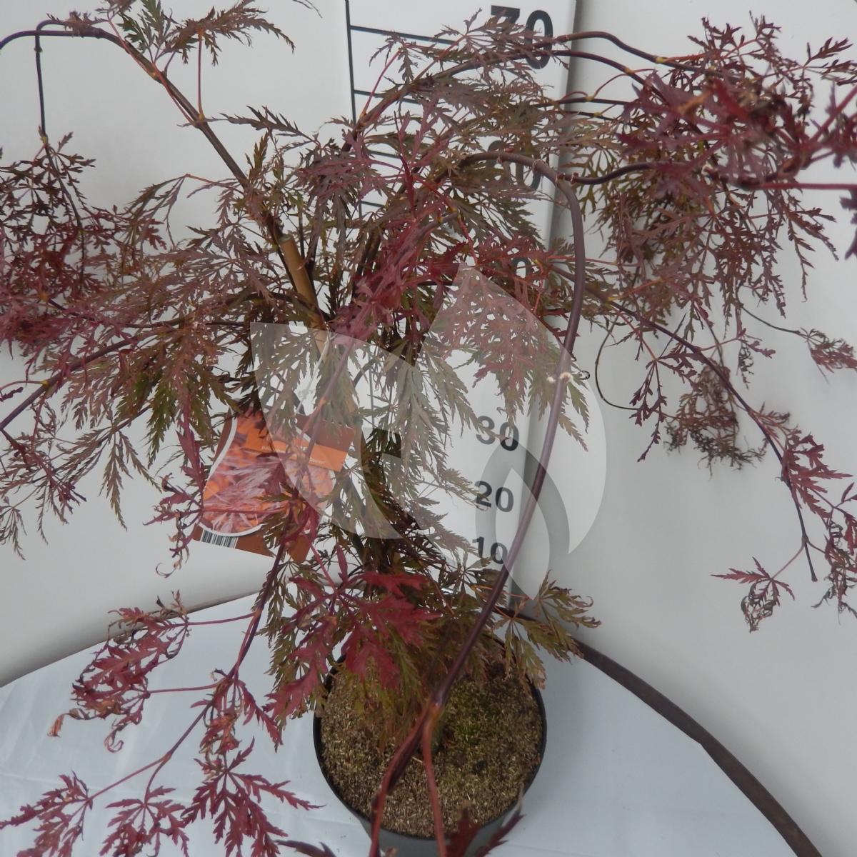 Deze donkerrode Japanse esdoorn groeit in de vorm van een paraplu. De top groeit meer in de breedte dan de hoogte in. De langzame groeier bereikt een hoogte van 2,5m na 10 jaar. De paarsrode kleur van het verfijnde blad steekt prachtig af tegen al het groen in uw tuin. In het najaar zal het blad iets feller van kleur worden voor het afvalt en een karakteristiek silhouet achter laat. Een prachtige plant, zowel als struikvorm als op stam, eveneens geschikt voor de kleinere tuinen.