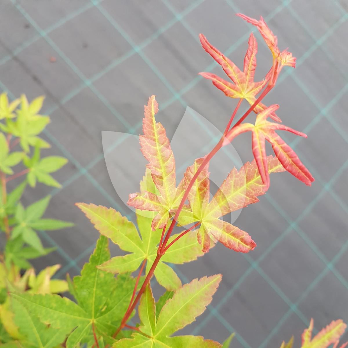 Zeer bijzonder is deze rood/groene Japanse esdoorn. Het frisse appelgroene blad steekt prachtig af bij de jonge twijgen die felrood van kleur zijn. In het najaar neemt het blad een goud/oranje kleur aan waarna het blad vervolgens zal afvallen. Wat overblijft is een grillig silhouet wat prachtige winterse plaatjes oplevert; hang bijvoorbeeld eens voederbollen voor de vogels in de plant wanneer de takken hier sterk genoeg voor zijn. Of accentueer het grillige karakter met sfeerverlichting!