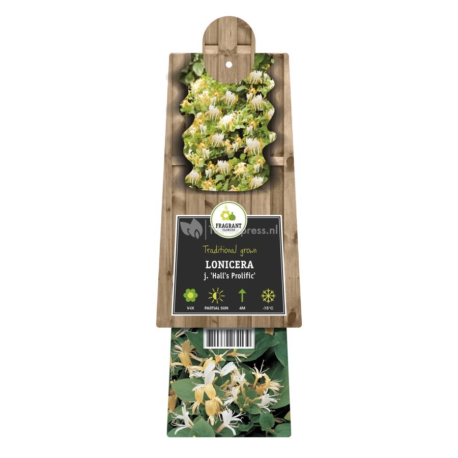 De Japanse kamperfoelie is een groenblijvende plant tijdens zachte winters. Met heerlijk geurende trossen zuiver witte en gele bloemen is het een prachtige verschijning om te zien. De bloemen vallen extra goed op door het diepgroene blad op de achtergrond. De zoete geur van honing is goed te ruiken op warme zomeravonden wanneer de avond valt. Heerlijk wanneer u met uw gezelschap op uw terras zit!
