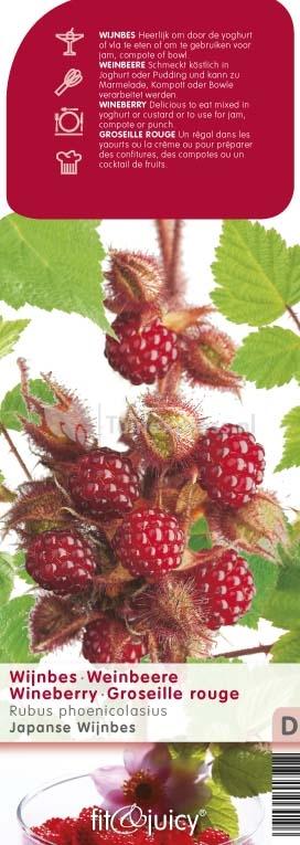 De Japanse wijnbes is familie van de braam. Hij levert vruchten die over het algemeen niet in winkels verkrijgbaar zijn; extra leuk om zelf te telen dus! De roodbehaarde stelen zijn daarnaast ook nog zeer decoratief. De Japanse wijnbes is een rijk producerende plant die doorlopend vruchten zal geven in juli en augustus.
