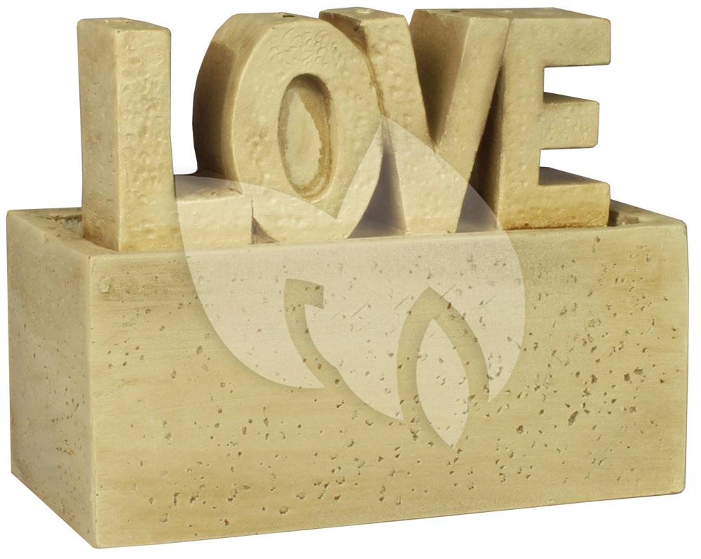 De kamerfontein Love beige is een mooie accessoire in iedere ruimte en zorgt door het stromende water voor een rustgevende en ontspannen sfeer. De kamerfontein is voorzien van de letters 'Love' en is daarmee een gezellige accessoire. Het water komt via de bovenzijde van deze letters uit de fontein en loopt weer naar beneden richting het waterreservoir. Het pompje welke het water rondpompt wordt met de kamerfontein meegeleverd en is zeer eenvoudig aan te sluiten. Het snoer aan het pompje heeft een lengte van 1,5 meter waardoor hij op afstand van het stopcontact te plaatsen is.