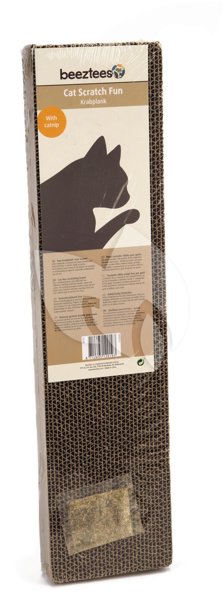Katten hebben van nature de neiging tot het krabben aan van alles en nog wat, om hun nageltjes af te vlakken. Helaas gebeurt het nogal eens dat dat ook aan bijv. uw meubels gebeurt. Op deze duo krabplank kan uw kat zich helemaal uitleven en laat ze uw meubels met rust. De ene zijde is voorzien van karton en de andere zijde van tapijt. Kleur van het tapijt: grijs.