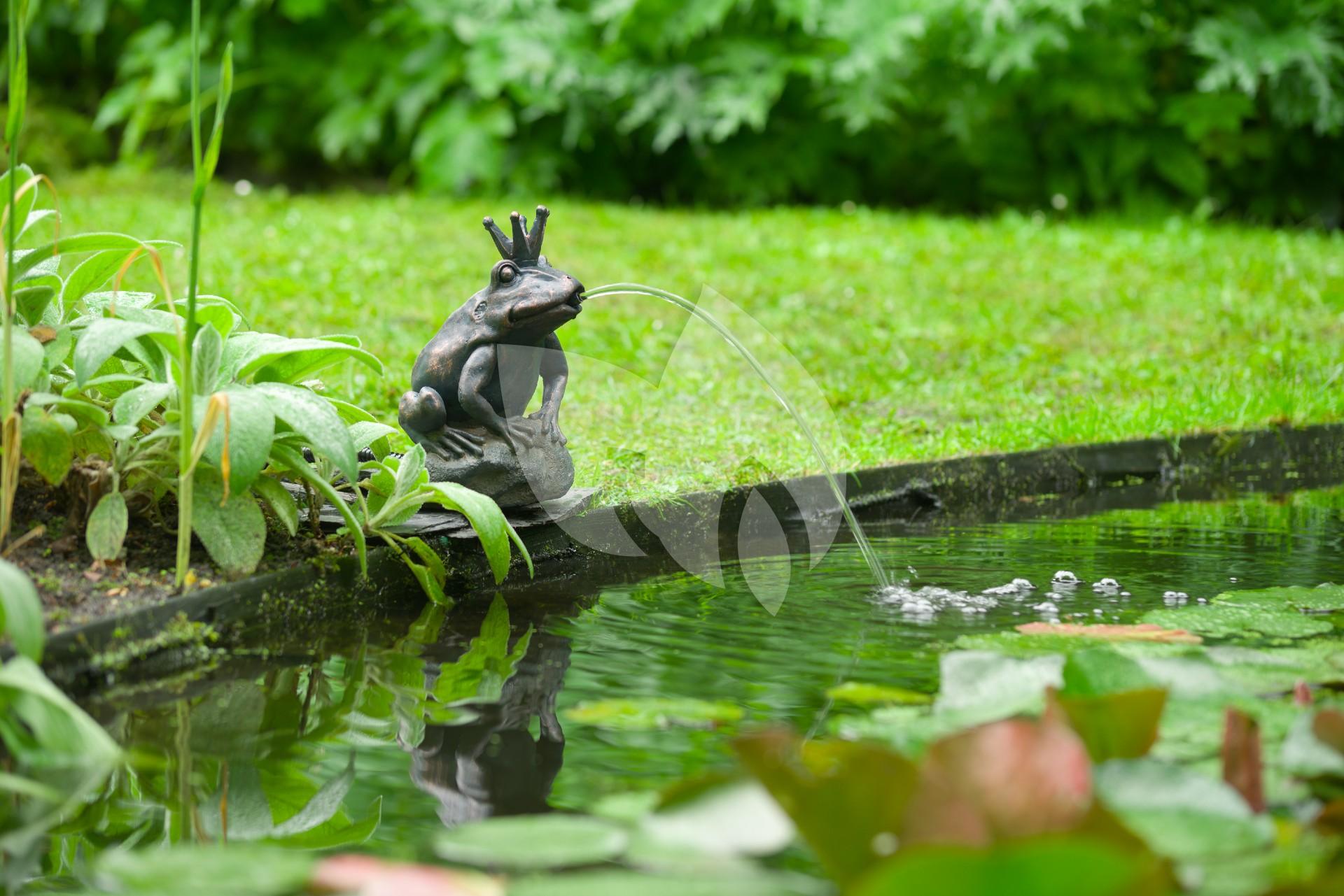 Een dieren-spuitfiguur in de vijver geeft een leuk, speels en decoratief effect. Tevens zorgt het ervoor dat het water in beweging blijft. Het spuitfiguur is gemaakt van polyresin, een kunsthars, en daardoor licht van gewicht en bestand tegen weersomstandigheden.