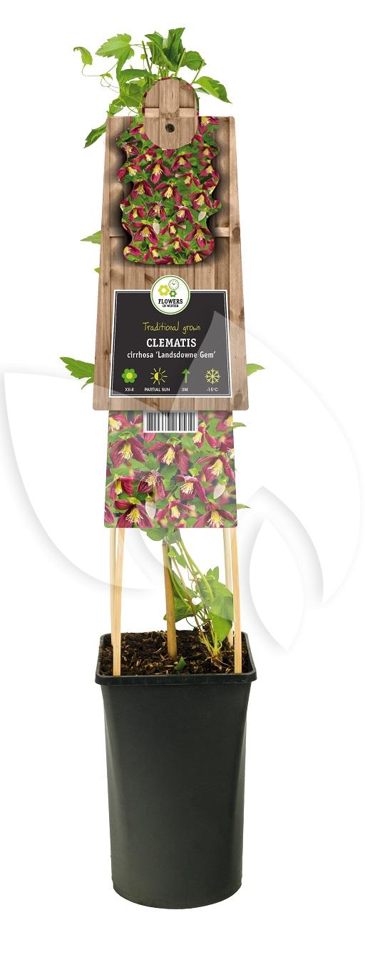 De Clematis Cirrhosa Landsdowne Gem is een sfeervolle tuinplant die tijdens de wintermaanden in volle bloei staat. De plant bloeit uit met prachtige rood met roze bloemen die erg kleurrijk zijn. Combineer deze plant met andere tuinplanten die winterhard zijn zodat jouw tuin er in de winter gezellig bij staat.