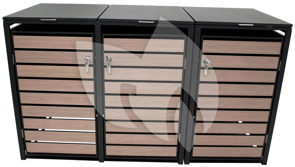 Kliko ombouw - Verzinkt staal Houtlook - Antraciet Bruin voor 3 kliko's