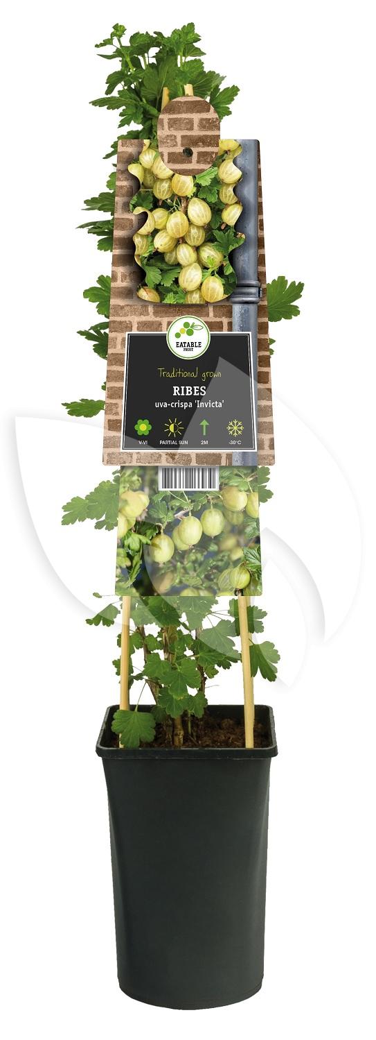 De Kruisbes Ribes Uva Crispa Invicta 75 cm klimplant groeit mooie groene vruchten die tijdens het rijpen een mooie gele kleur krijgen. De bessen van de Kruisbes Ribes Uva Crispa Invicta 75 cm klimplant zijn erg sappig en iets zuur van smaak. De bessen zijn rijp vanaf juli tot en met augustus. De plant is winterhard.