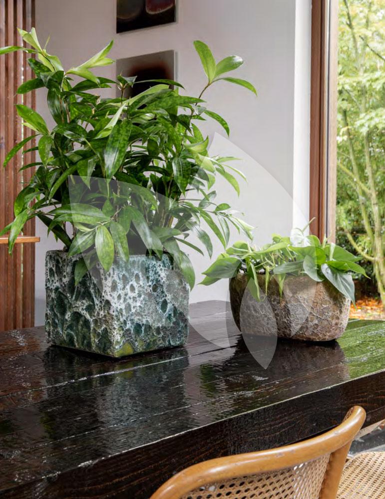 Lava Relic beige ovale bloempot binnen 38x24x19 cm