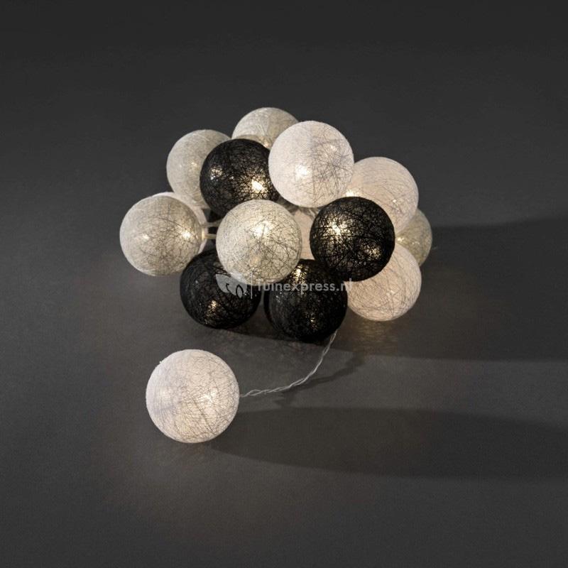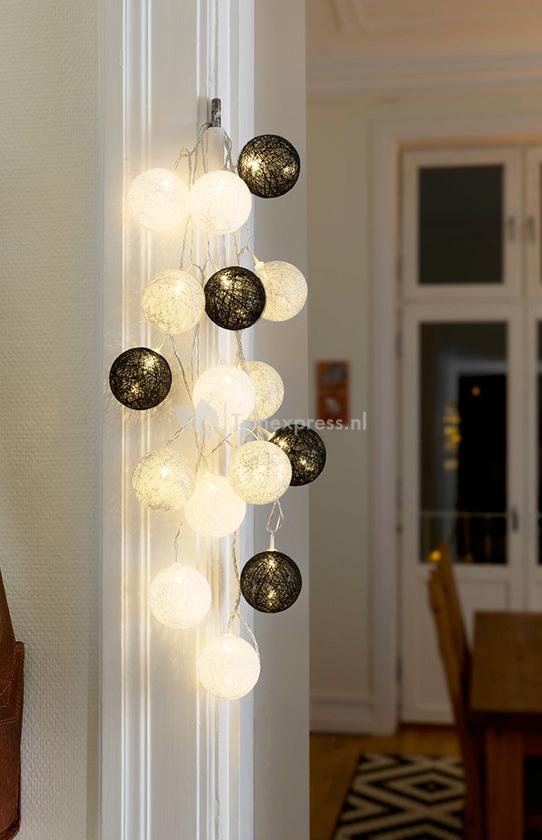 Het lichtsnoer is voorzien van 16 cotton balls in de kleuren zwart, grijs en wit. De bollen hebben ieder een diameter van 6 centimeter en zijn allen voorzien van een LED-lampje. De ledverlichting in de bollen zorgt voor een sfeervol, warmwit licht. De ledverlichting in het lichtsnoer is duurzaam en energiezuinig, hierdoor kunt u jarenlang met plezier genieten van het LED lichtsnoer!