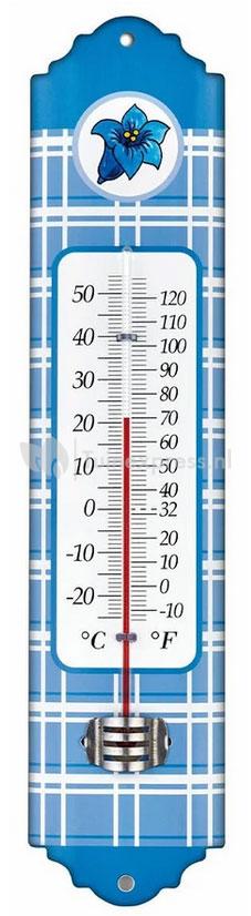 Metalen thermometer Alpen 29 cm blauw voor gebruik binnen en buiten