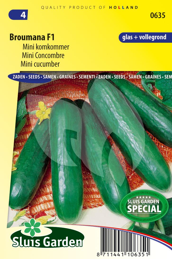 De mini komkommer is een donkergroene, bittervrije vrucht van circa 15 cm lang. De komkommer is geschikt voor de vlakveldsteelt en/of teelt aan draad onder glas of in de vollegrond. U kunt de komkommer zaden zaaien vanaf april tot juli. Bij voorkeur kunt u de komkommer voorzaaien op potjes van ca. 10 cm. Voor de beste kwaliteit kunt u de zaden het beste ter plaatse zaaien op een zonnige, goedbemeste en beschutte plaats en ook niet eerder dan het einde van de maand mei. Wanneer er per rank 2 tot 3 vruchten zijn gezet, moet u de top uit de rank knijpen om teveel aan vruchten te voorkomen en een langere oogst van de plant te bevorderen.
