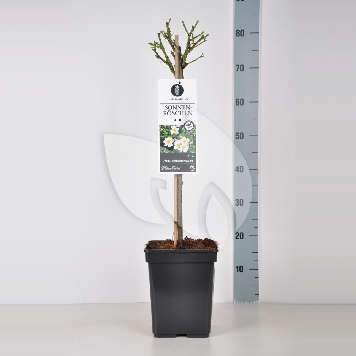 Miniatuurroos op stam (rosa "Sonnenröschen"®)