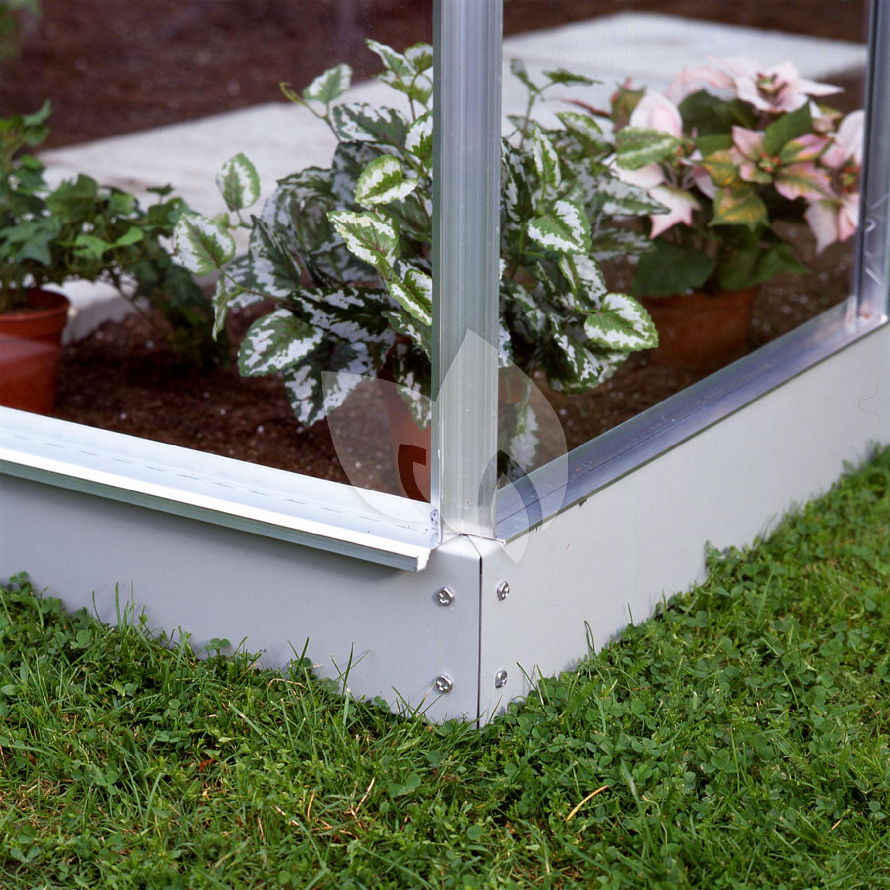 U start met het plaatsen van de fundering. Voor alle kassen, priëlen en orangerieën kunnen wij een stalen of aluminium fundering leveren. U kunt er voor kiezen zelf een gemetselde fundering te maken of de kas op een muurtje te plaatsen. De maten in de folder zijn buitenwerks. Bij gebruik van de stalen of aluminium fundering moet deze gesteld worden op zgn. stelstenen. In de hoeken brengt u grondankers aan in een gat van rond ca. 30cm. Daarna giet u deze gaten vol met beton (wordt niet meegeleverd). Bij het waterpassen neemt u 1 cm afschot per meter voor een juiste afloop van uw hemelwater. De kas moet met schroeven op de fundering worden verankerd (worden niet meegeleverd).