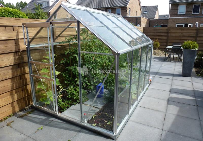U koopt een bouwpakket geleverd met een montagehandleiding en bouwtekeningen. Lees deze vooraf heel goed door! Zoek een locatie minimaal 50cm uit de muur of schutting. Deze ruimte heeft u nodig bij het beglazen! Voor het plaatsen van een muurkas gelden andere specificaties.