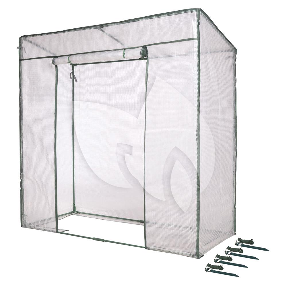 De tomatentuinkas is voorzien van een groenkleurig metalen frame met epoxycoating, bestaande uit buizen met een diameter van 18 mm. Dankzij het bodemframe is de kas gemakkelijk te verplaatsen. Om het frame is een hoes bevestigd, gemaakt van uv-bestendig polyethyleen met een dichtheid van 145 g/m². De hoes is voorzien van een ritsluiting zodat u eenvoudig de tuinkas kunt openen en sluiten en uw tomaten snel toegankelijk zijn voor de nodige verzorging, voeding en beluchting. De tuinkas beschikt over scheerlijnen om de kas eenvoudig aan de grond te verankeren en is voorzien van drie vensters die een optimale beluchting mogelijk maken.