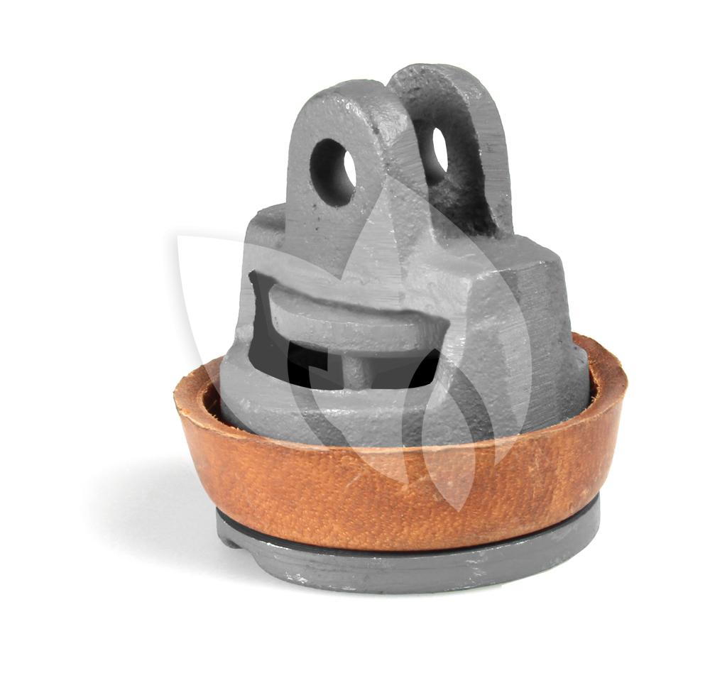 De complete zuiger heeft een diameter van 7,8 centimeter en een hoogte van 8,5 centimeter en is voorzien van de leren zuiger om het ijzer heen.