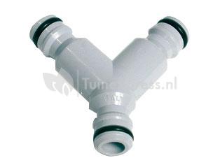 Deze y-verdeler zorgt voor een verbinding van 1 naar 2 tuinslangen.