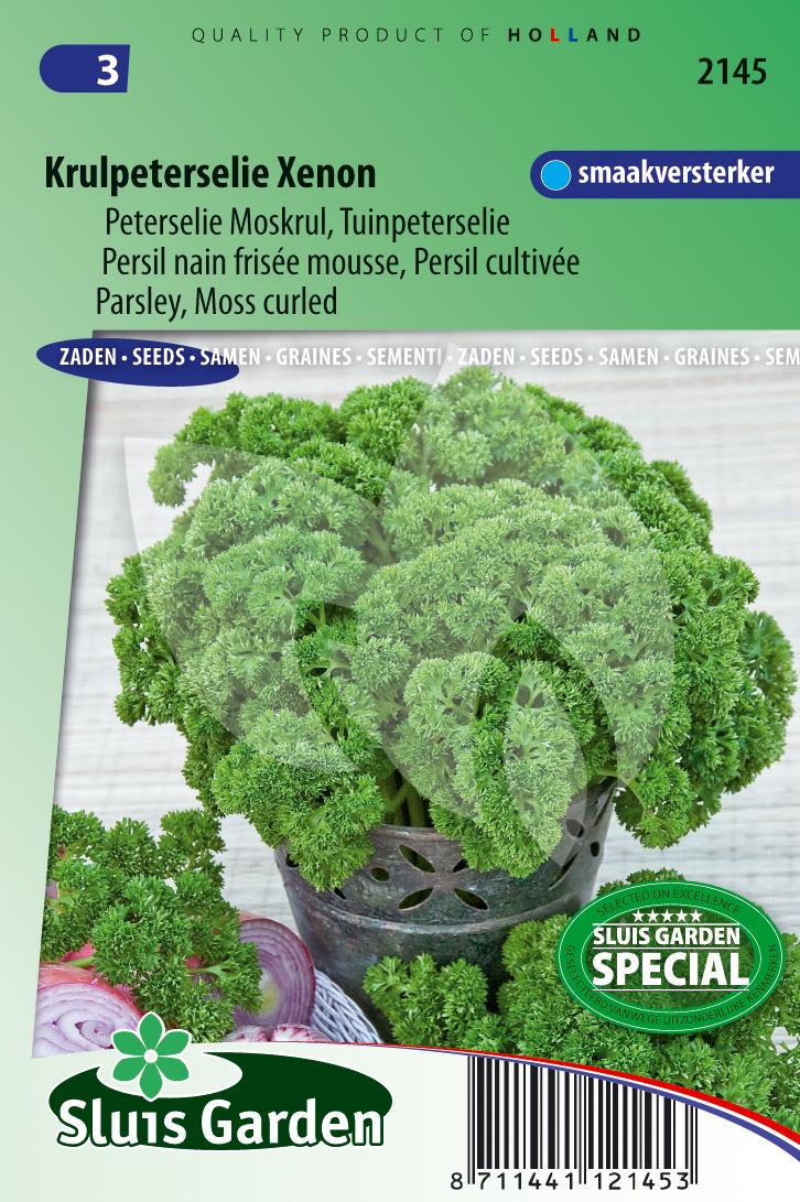 De Xenon is een krulpeterselie die in de keuken vaak wordt gebruikt als garnering bij gerechten. Deze decoratieve peterselie heeft een donkergroene kleur en een perfecte, hartige en verfijnde smaak. De krulpeterselie heeft iets minder smaak dan de platte peterselie, maar is wel mooier van vorm voor de garnering. Een erg mooie en lekkere toevoeging bij bijvoorbeeld aardappelgerechten, peentjes en eieren!