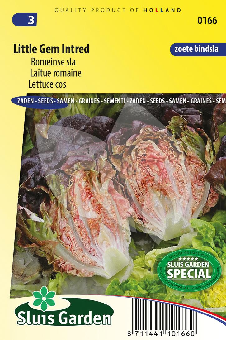 Deze Little Gem Intred kan ook wel omschreven worden als een combinatie van een kropsla met bindsla. Alle bladeren zitten opeengepakt en de krop ligt verticaal omhoog, waardoor het een zeer compacte plant is met een mooi gevuld hart, waarbij alleen de zeer korte en zoete hartblaadjes worden aangeboden. Deze romeinse sla is een rode selectie van de overbekende klein gekropte Romeinse sla Little Gem of Sucrine.
