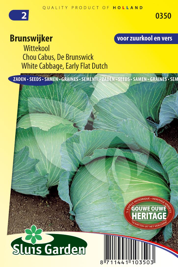 De Brunswijker is een oud en vertrouwd ras uit 1880 die witte kolen vormt die u zowel vers als voor zuurkool kunt gebruiken! Deze grote, platronde kolen krijgen een gewicht tot ongeveer 3 kg en bevatten verschillende mineralen en vitamine B en C. Wist u dat de witte kool eigenlijk niet wit is, maar lichtgroen van kleur? Hoe dichter u bij de kern van de plant komt hoe lichter de kleur wordt.