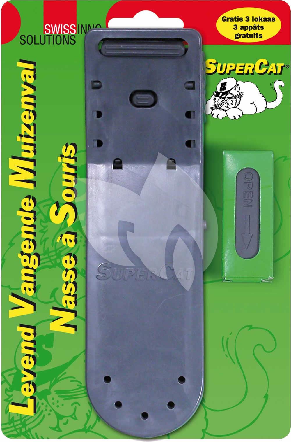 De Catch Alive is een muizenval speciaal voor het levend vangen van muizen. Met één eenvoudige druk op de knop is de muizenval al geactiveerd en klaar voor gebruik. Het exclusieve gepatenteerde design zorgt ervoor dat de val pas dicht valt als de muis helemaal in de val zit. De muizenval is direct klaar voor gebruik en gevuld met een natuurlijk, niet giftig lokmiddel die muizen erg aantrekkelijk vinden. De muis kan worden vrijgelaten zonder hem aan te hoeven raken. De SuperCat muizenval bevat geen klemmende bekken of sterke springvveren en is hierdoor veilig voor kinderen of andere huisdieren. Navulling lokmiddel is los verkrijgbaar.