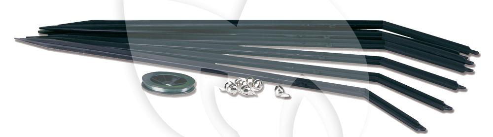 - Inclusief 8 staanders, 25 meter nylondraad en 8 rinkelbelletjes