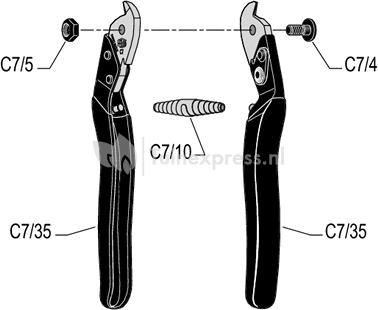- Alle onderdelen van deze snoeischaar kunnen vervangen worden