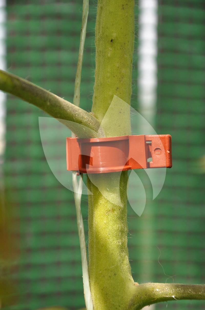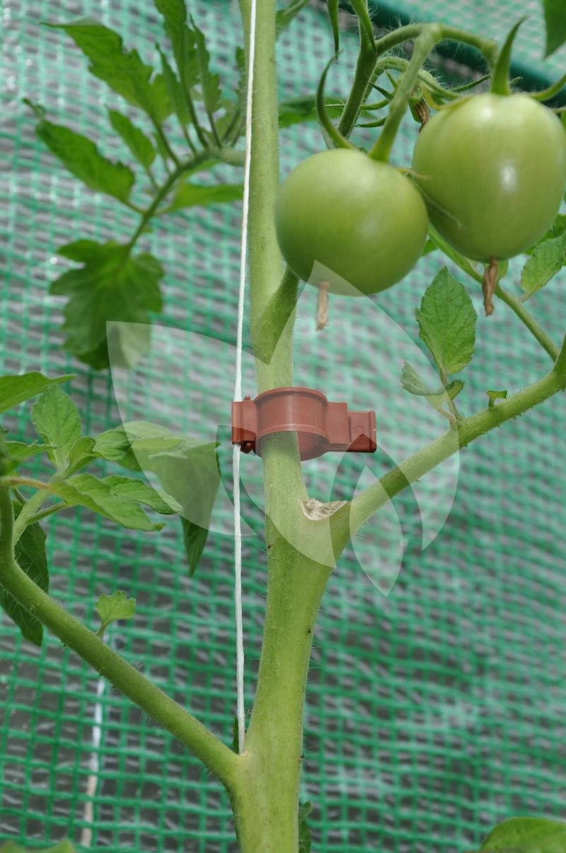 Handige tomatenclips voor het geleiden van klimmende groenteplanten langs touwen of stokken zoals in de professionele tuinbouw. Verpakt per 20 stuks.