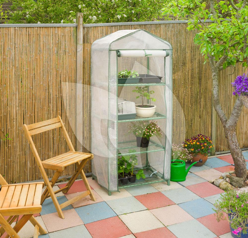 De balkonkas zal uw jonge plantjes beschermen tegen verschillende weersinvloeden en extreem fel zonlicht. De tuinkas is voorzien van een bodemframe zodat u, indien nodig, de kas eenvoudig kunt verplaatsen. Het metalen frame is voorzien van een epoxycoating en de buizen hebben een diameter van 16 mm. Het groene foliehoes om het frame is gemaakt van versterkt uv-bestendig polyethyleen met een dichtheid van 140 g/m². De patiokas is voorzien van een centrale opening aan de voorkant met ritssluiting. Voor een optimaal en plezierig gebruik van de balkonkas, is de kas uitgerust met een wandrek met vier planken. U kunt zo op vier niveaus planten en zaailingen kweken, de planten gemakkelijk ordenen en de ruimte in de kas wordt ook nog eens optimaal benut!