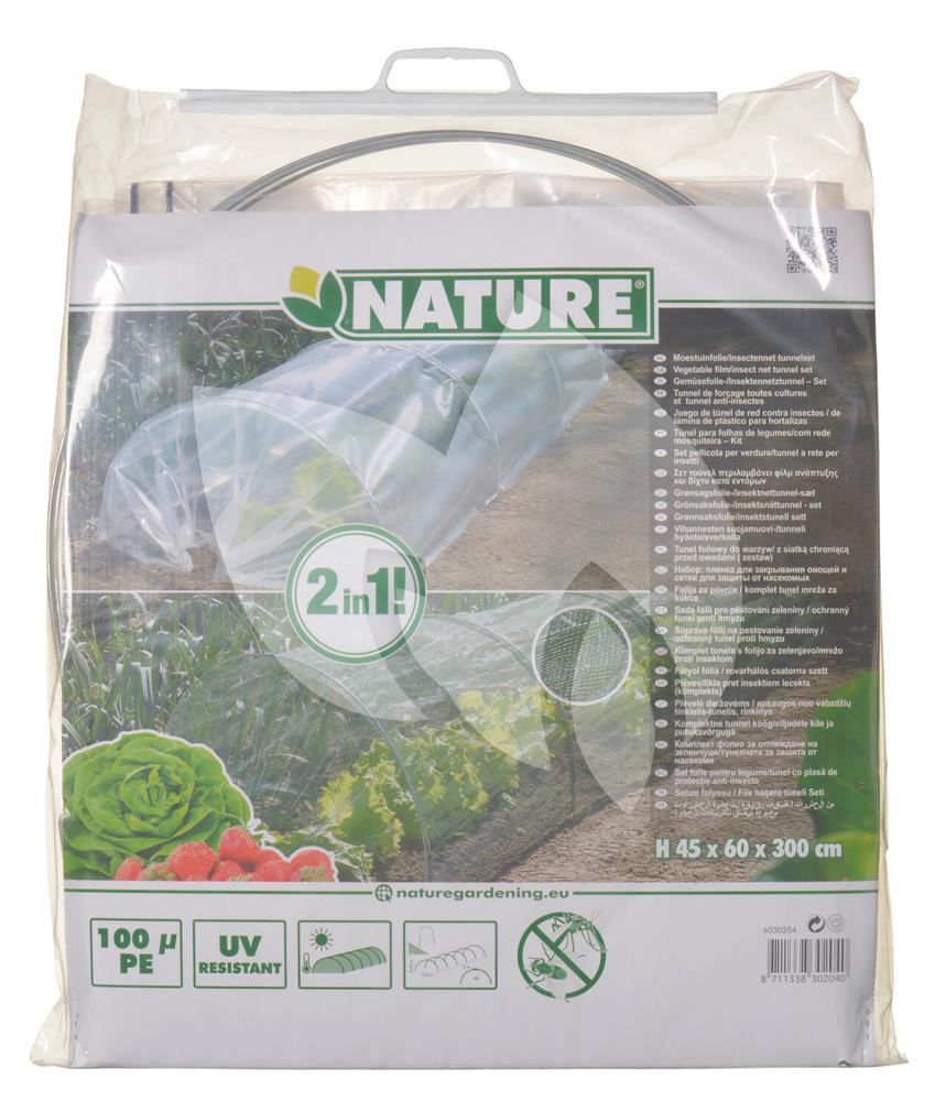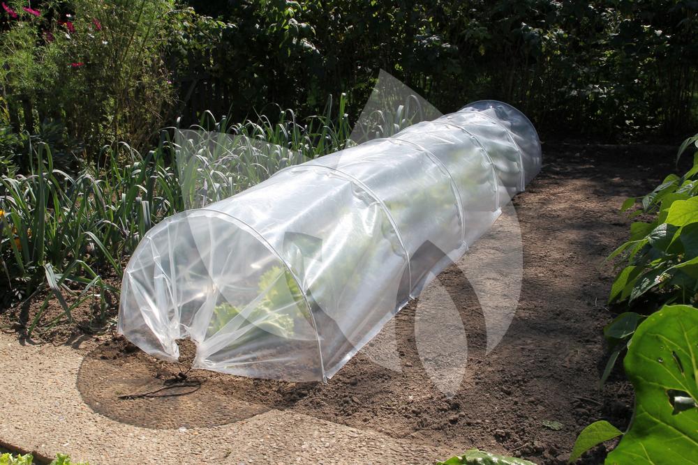 Het bouwpakket bestaat uit afdekfolie, een anti-insectennet en 6 tunnelbogen. Het folie is gemaakt van transparant polyethyleen (LDPE) en heeft een dikte van 100 micron. Het anti-insectennet is voorzien van mazen van 2 bij 4 mm groot. De folietunnel is eenvoudig en snel te installeren. U steekt de tunnelbogen over de zaailingen in de grond en brengt de hoes, die u op dat moment wenst, erover aan. Dankzij de hoogte van de tunnel blijven ook redelijk hoge groenten beschut tot aan de oogst.