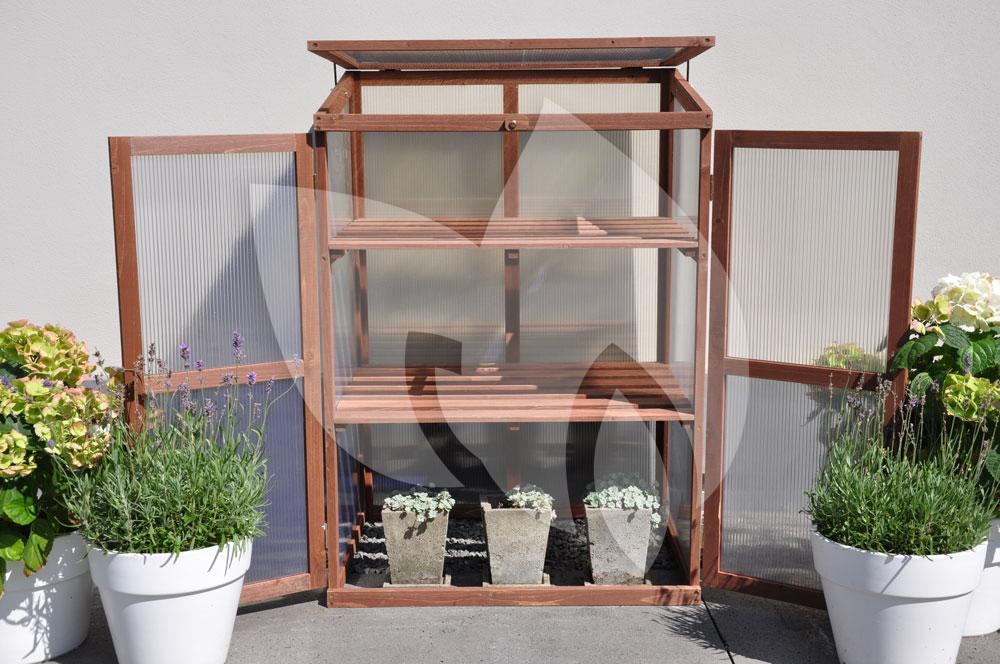 Deze kweekkas bestaat uit een houten frame en heeft een kunststof afdichting. Het hout is bruin verduurzaamd en afkomstig uit goed beheerde bossen. De afdichting van polycarbonaat heeft een dikte van 4 mm en is dubbelwandig. Polycarbonaat heeft verschillende voordelen: het is het niet gevoelig voor breuk, geheel veilig in gebruik en heeft het bovendien een isolerende werking