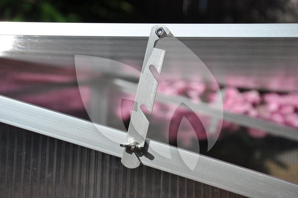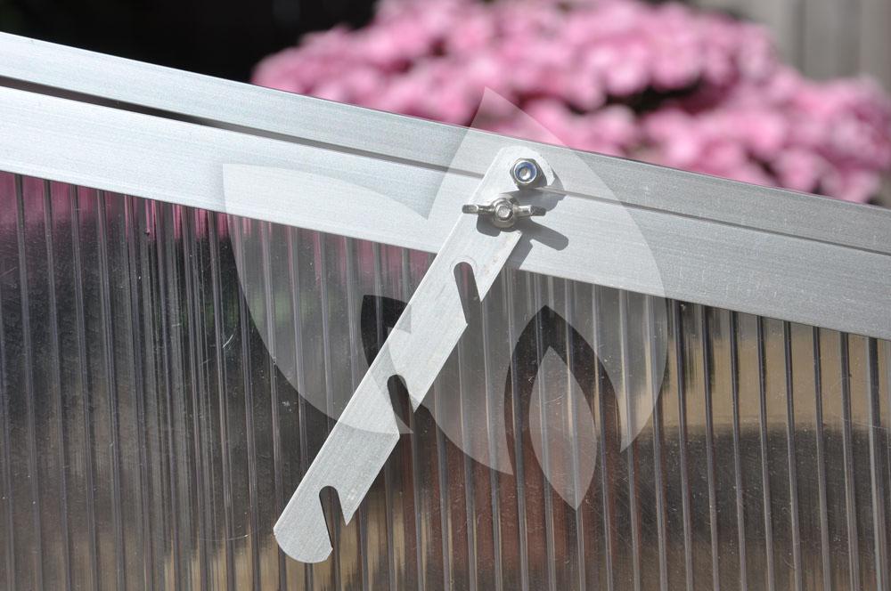 De Silver Thyme kweekkas is voorzien van 2 ‘kleppen’ aan de bovenzijde voor het beluchten van de planten. De ‘klep’ kan middels 2 uitzetters in 4 standen windvast worden geborgd. Met 4 grondpennen van 25 cm wordt de Silver Thyme kweekkas met de ondergrond verbonden.