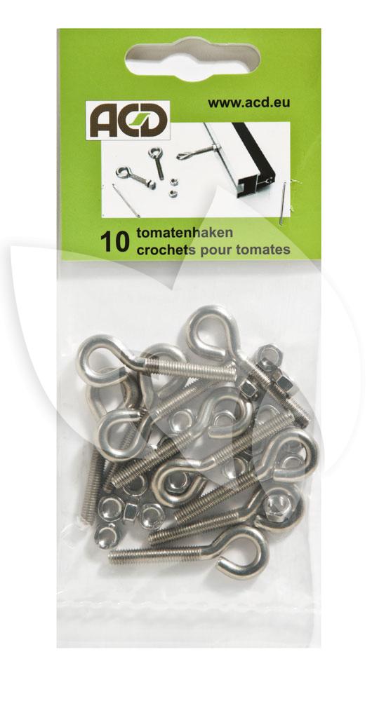 De tomatenhaak Inox kan in de kas bevestigd worden en zorgt ervoor dat u met een touwtje een tomatenspiraal kunt rechthouden. De tomatenhaken worden geleverd als een set van 10 stuks.