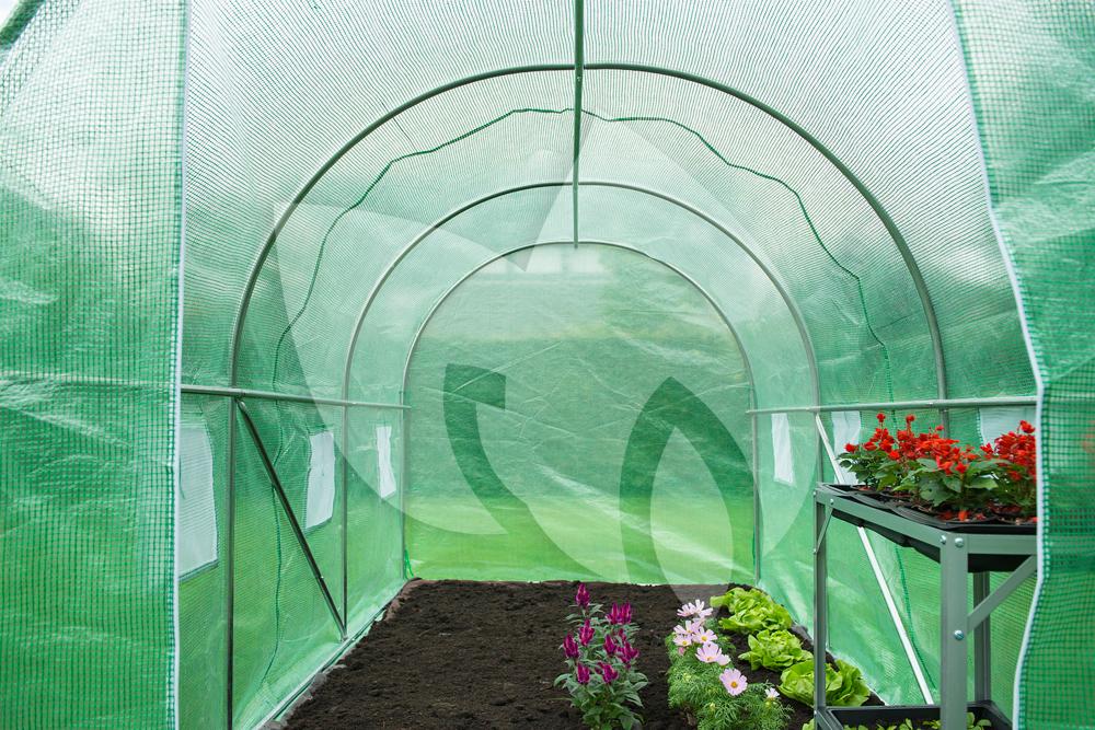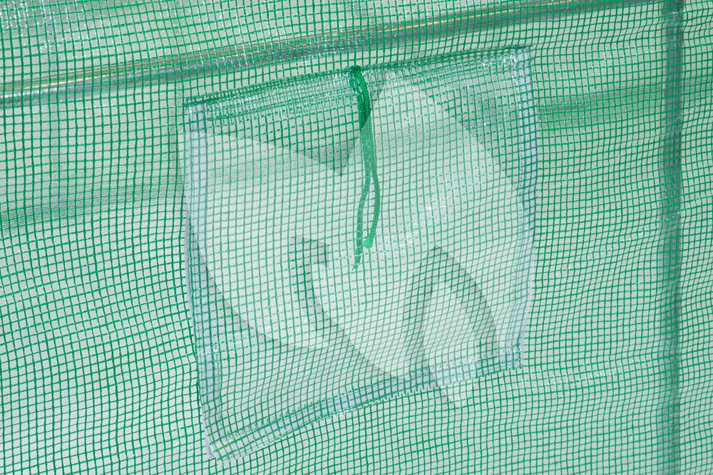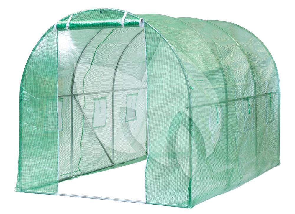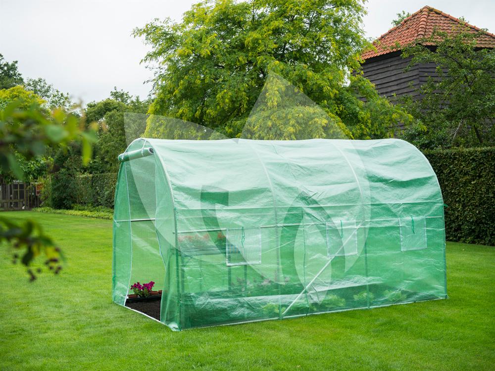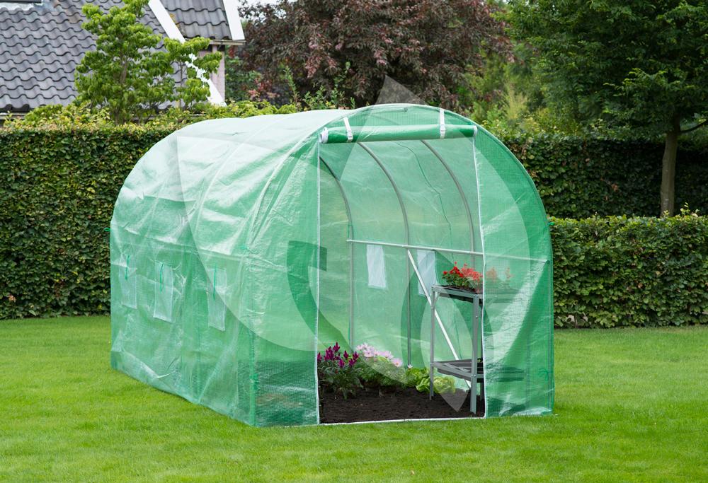 Met de tunnelkas kunt u in de vollegrond, in bloempotten of in bloembakken gaan kweken. De folietunnelkas is gemaakt van een metalen frame en koppelstukken van verzinkt staal met een diameter van 25 mm. Over het frame is een versterkt uv-bestendig polyethyleen hoes met een dichtheid van 140 g/m² gespannen. De tuinkas is voorzien van een bodemframe en is erg licht van gewicht, waardoor u de kas gemakkelijk kunt verplaatsen. De centrale opening aan de voorkant van de tuinkas beschikt over een ritssluiting en aan elke zijde van de kas bevinden zich drie ventilatieopeningen.