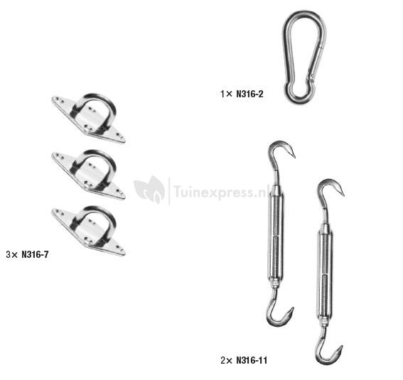 Nesling bevestigingsset voor schaduwdoek driehoek