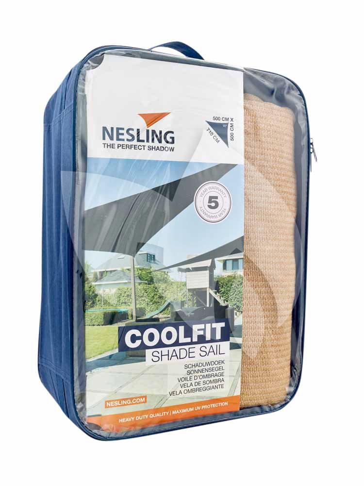 Nesling Coolfit schaduwdoek driehoek 90 graden zand 5 x 5 x 7.1 meter