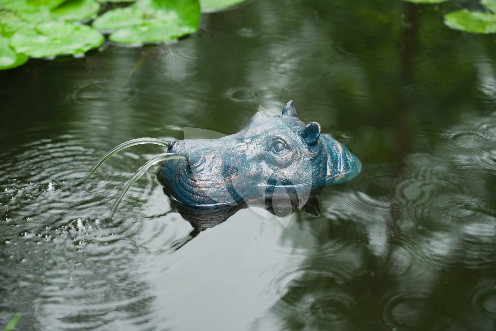 Spuitfiguur van een nijlpaard voor in de vijver