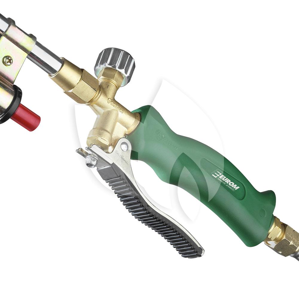 De onkruidbrander van Eurom werkt op propaan en butaan en dient te worden aangesloten op een reguliere 11 kg gasfles. De onkruidbrander van Eurom is eenvoudig in gebruik. U opent de gaskraan, activeert de ontsteking door middel van een knop en u kunt beginnen met het verwijderen van uw onkruid! Bij de onkruidverbrander wordt een drukregelaar van 2.5 bar geleverd.