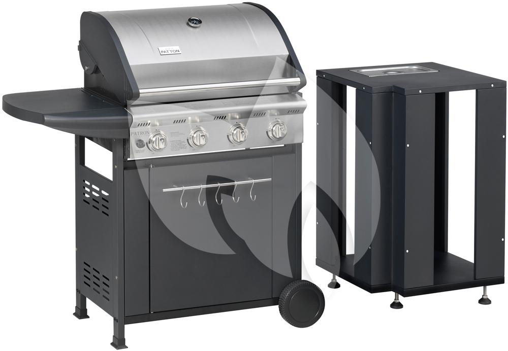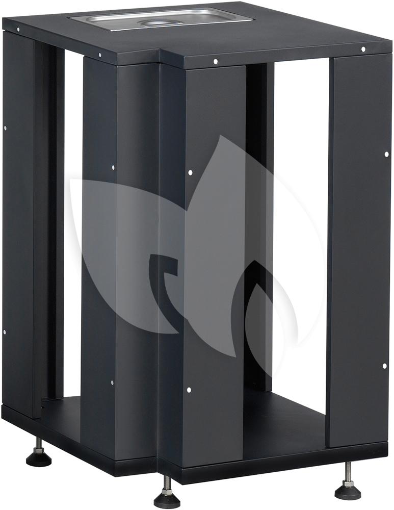 - Frame: antraciet getextureerde coating, voorzien van 4 stelpootjes. Uitneembaar rvs saus-/saladebakje met deksel.