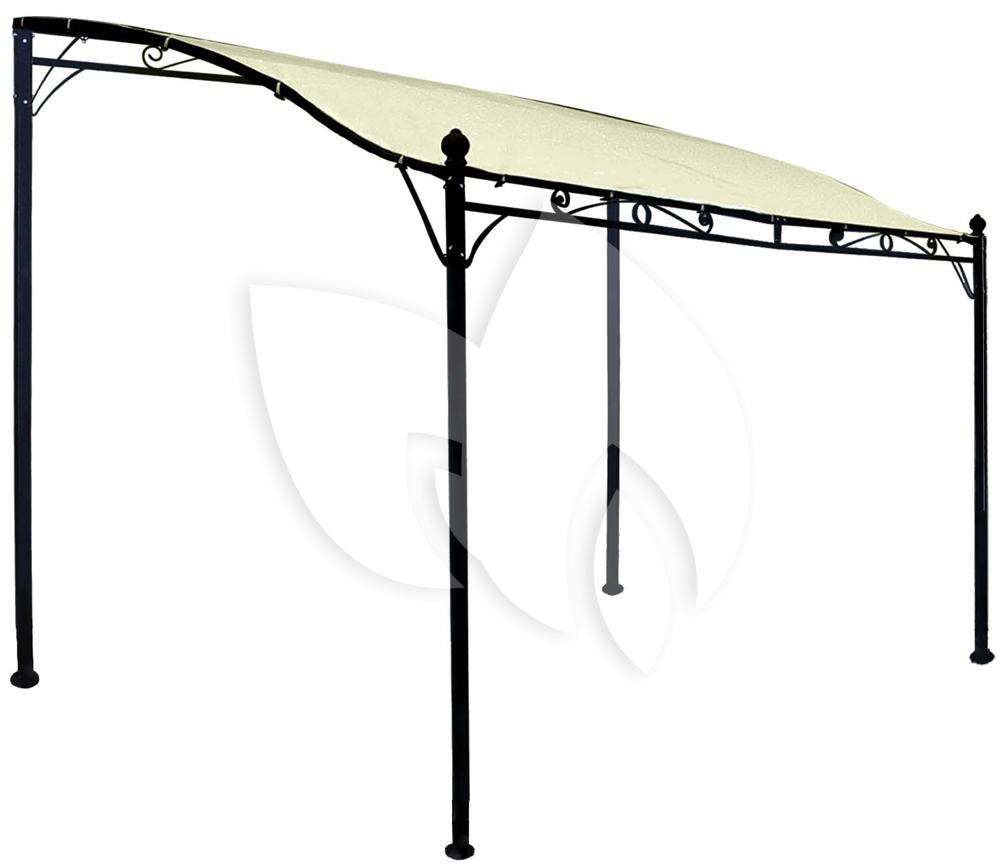 Het metalen frame is aflopend; de voorzijde is lager dan de achterkant van het paviljoen. De dakbedekking is gemaakt van polyester in de kleur ecru. Het doek is afgewerkt met een waterdichte PVC coating zodat u en uw tuinmeubelen droog blijven tijdens een regenbui. Het doek wordt eenvoudig bevestigd met klittenband. Dit maakt het eenvoudig het doek te verwijderen zodra het tuinseizoen over is, u kunt het doek dan binnen opbergen om de levensduur te verlengen.