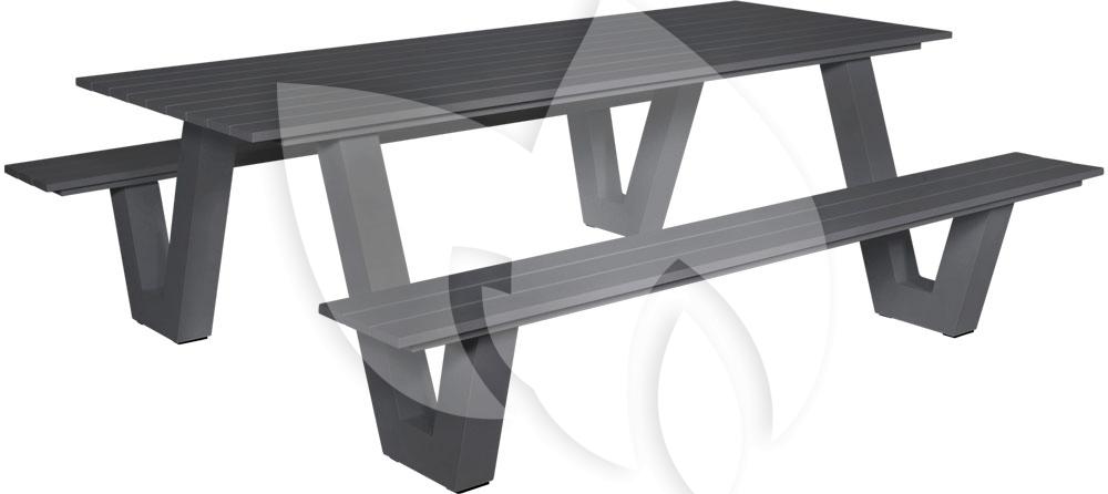 De stoere picknicktafel breeze is een tafel die je met vrijwel iedere tuinstijl kunt combineren. De tafel is ontwikkeld uit aluminium en is voorzien van een antraciet kleur. Het is een prachtige aanwinst voor iedere tuin. Naast een ontzettend mooi uiterlijk, biedt de ruime tafel plaats voor wel zes personen!
