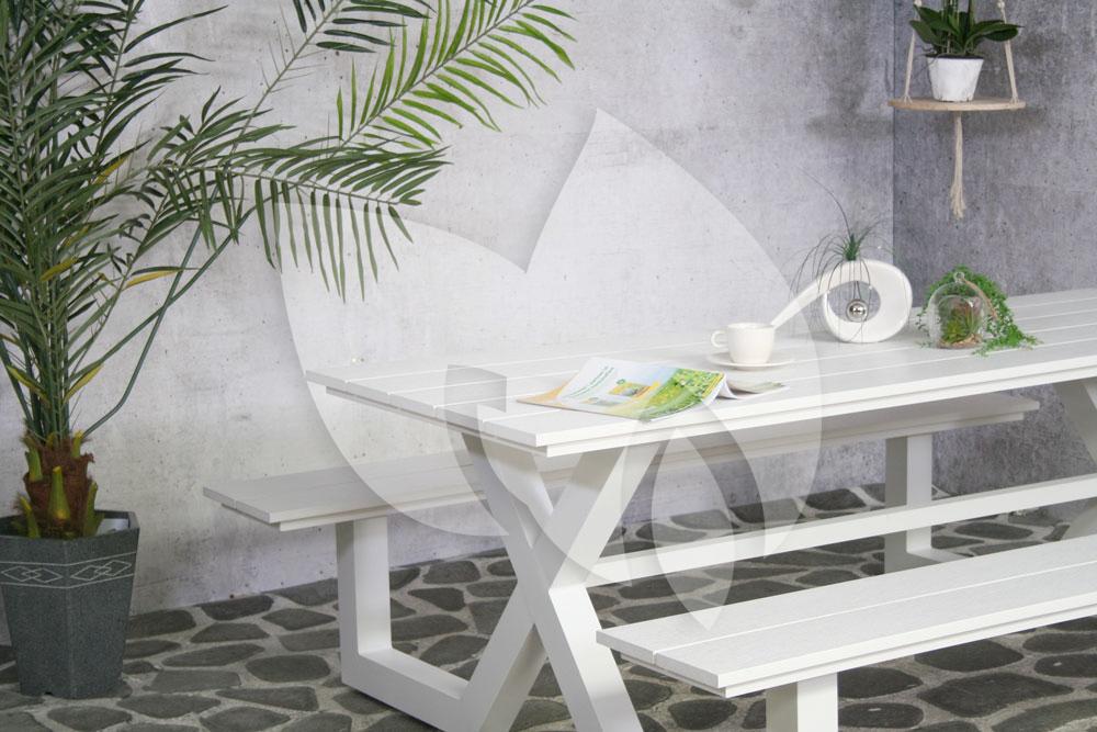 Voor de prachtige picknicktafel Family aluminium wit is er op ieder terras en in iedere tuin een geschikte plek te vinden! De witte picknicktafel werkt in iedere omgeving als een ware blikvanger en fleurt iedere ruimte op.