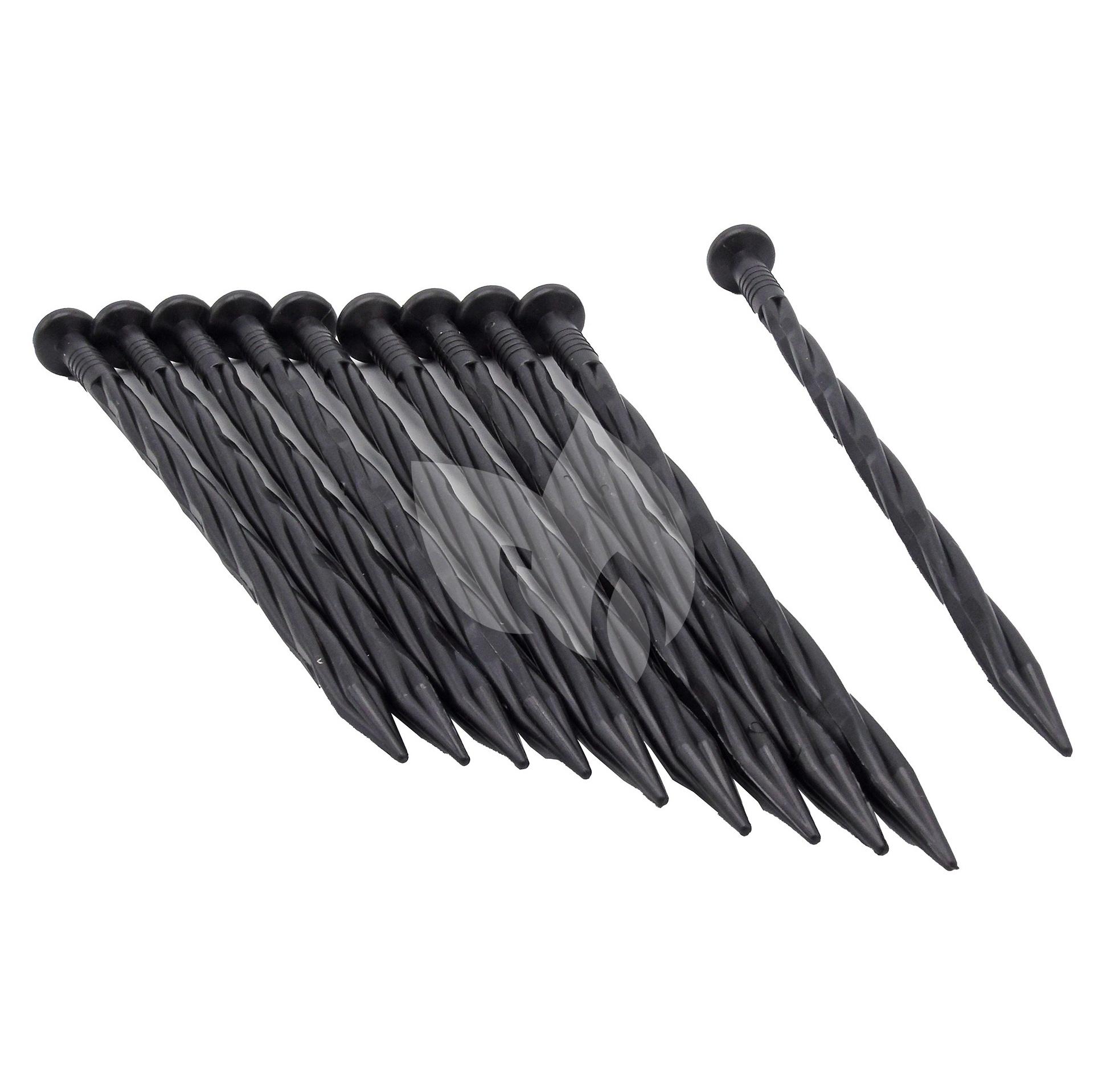 De piketpaaltjes lijken op schroefnagels, hierdoor blijven ze stevig in de grond zitten en zijn ze lastiger te verwijderen uit de grond. Met een hamer kun je de grondpennen de grond in slaan tot ze gelijk zijn aan de grond. Vervolgens kun je ze bedekken met substraat of andere natuurlijke bedekking tot ze niet meer zichtbaar zijn. Aangeraden wordt het gebruik van 2 tot 4 piketpaaltjes per strekkende meter.