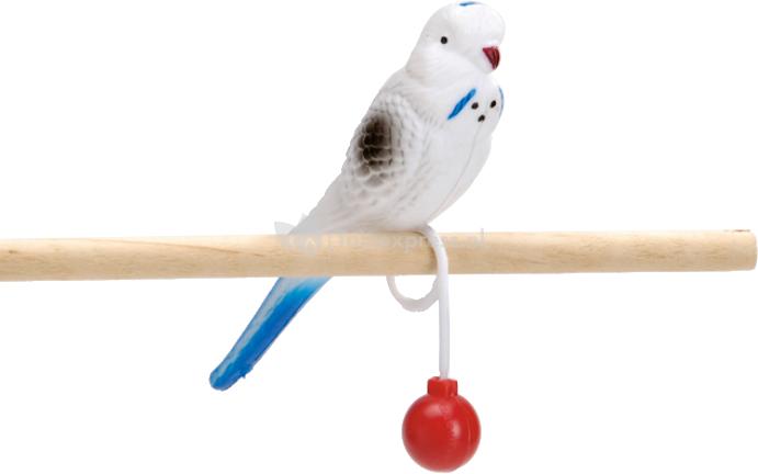 Een plastic parkiet op ring, zodat u deze makkelijk om de zitstok kunt schuiven. Voor gezelschap van uw echte parkiet
