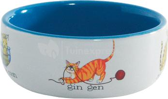 Een porseleinen eet of drinkbak voor de kat. Voorzien van een leuke kattenprint aan de buitenzijde.