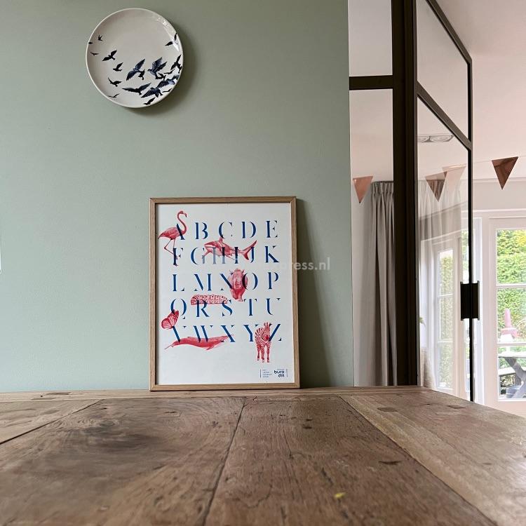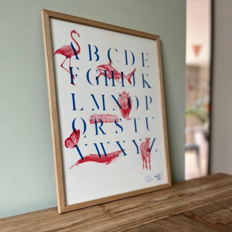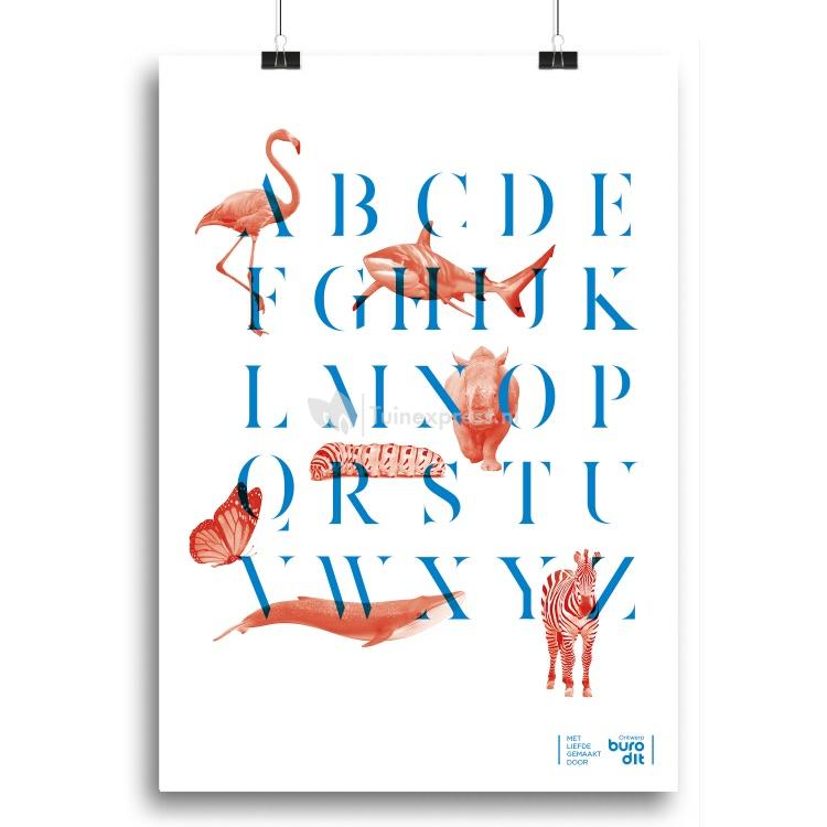 Poster kinderkamer alfabet en dieren in felle kleuren formaat 29,7 x 42 cm